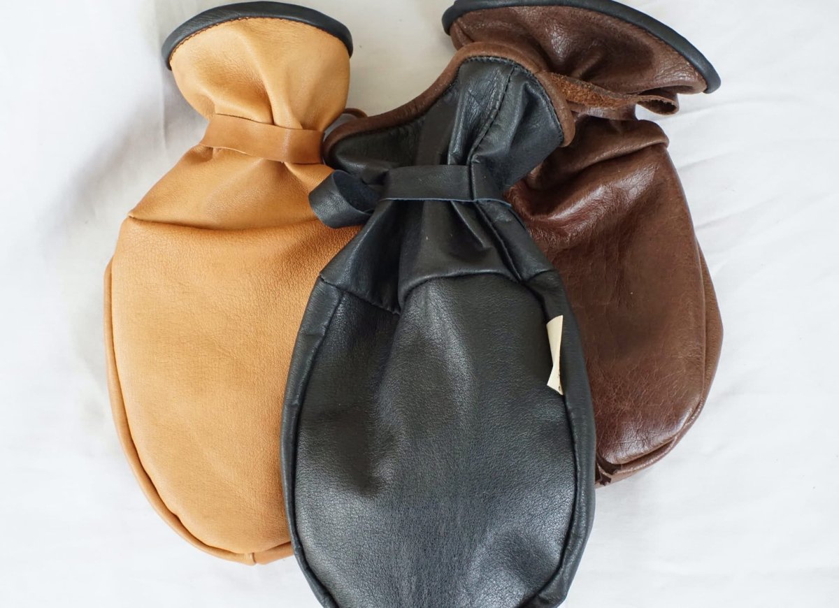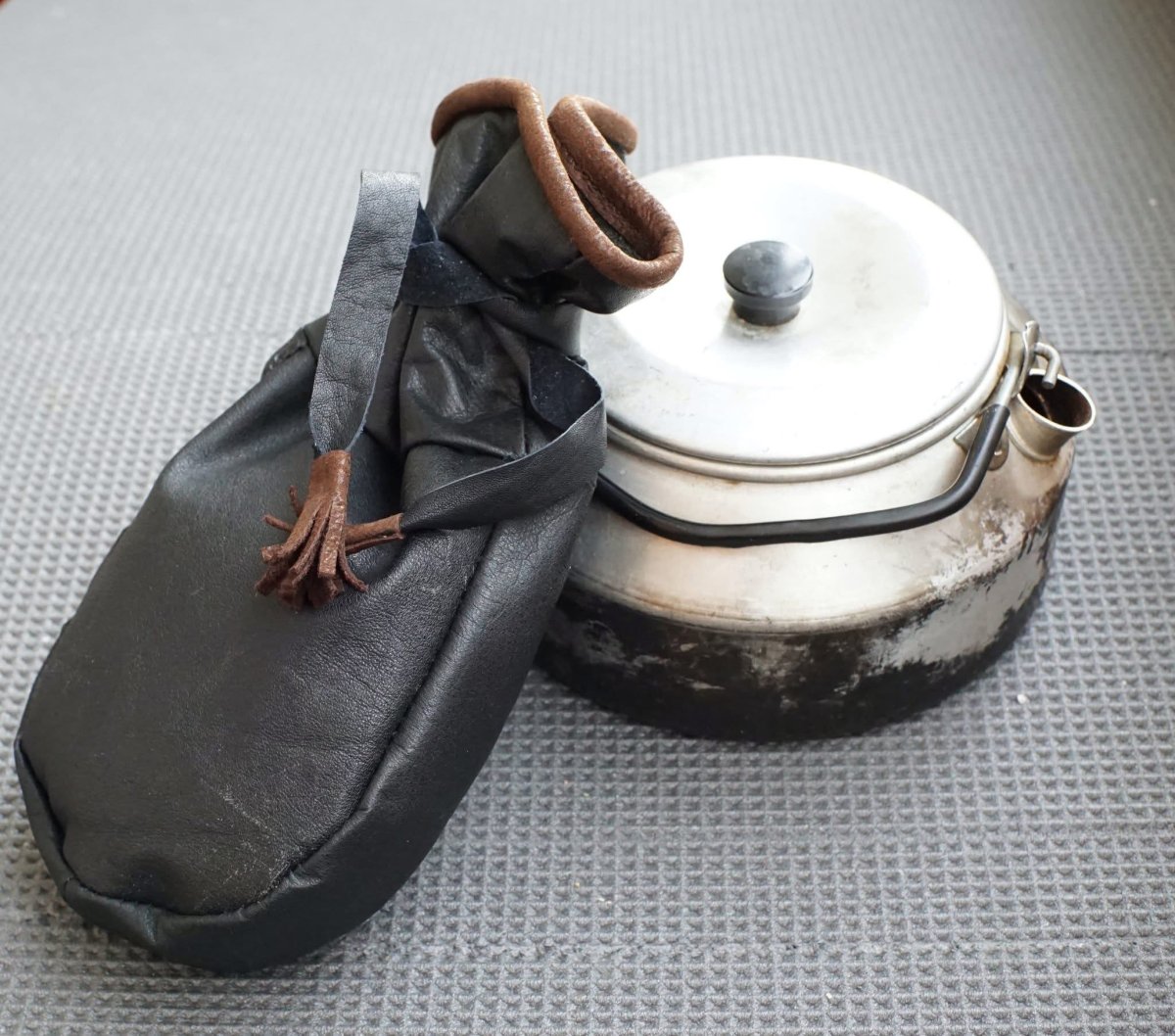 Kaffepåse i återbrukat skinn. Perfekt att ta med sig på vandringsturen och utflykter. Eftersom kaffepåsarna är handsydda får varje produkt får sin unika design.